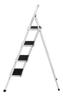 Foldable 4 Step Steel Ladder Non Slip Tread Stepladder Safety Kitchen, Home, Industrial DIY Steel Construction Strong & Durable